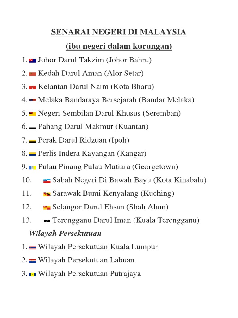 Senarai Negeri Di Malaysia Pdf